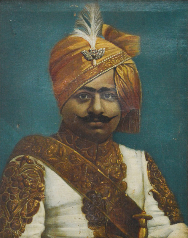 Sir Pratapsinh Rao Gaekwad (1908-1968) Maharaja of Baroda (r. 1939-1951) by Unknown artist (Raja Ravi Varma’s follower) circa 1930 Oil on canvas 30 x 23.6 in. (76 x 60.5 cm.)