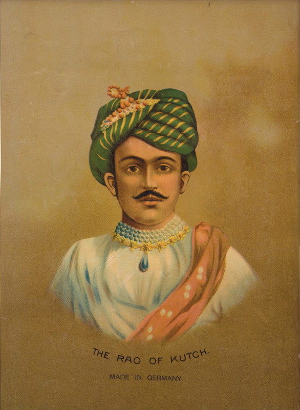 Thakor Sahib Shri Mansinhji Sursinhji (1862 – 1905) 25th Ruler of Palitana State in Gujarat, educated at Rajkumar college, Rajkot. Succeeded to the throne in 1885. Chromolithograph by a German artist, after a painting by an Indian artist Size: 13.75 x 10 in. (34.9 x 25.4 cms.) Date of printing – circa 1880