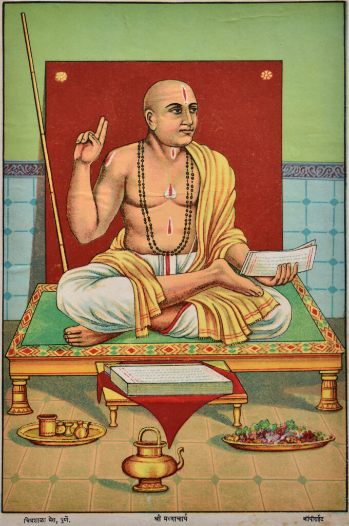 Shri Madhvacharya (1238-1317) Size: 13.2 x 8.6 in (33.5 x 21.8 cm) Date of printing: 1910s-1920s The philosopher and theologian Madhvacharya was the leader of the Dvaita (dualism) school of Vedanta. He was a critic of Adi Shankara’s Advaita Vedanta and Ramanuja’s Vishishtadvaita Vedanta teachings. He thinks that there is a fundamental difference between Atman […]