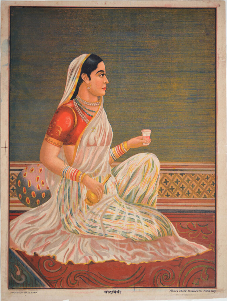 Chand Bibi (1550-1599) Size: 19.6 x 14.6 in (49.8 x 37.1 cm) Date of printing: 1880s-1890s Sultana Chand Bibi was the Regent of Bijapur and Ahmednagar Sultanates (northwestern Deccan). She is best known for defending Ahmednagar against the Mughal forces of Emperor Akbar in 1595. Jita Khan, a eunuch valet of Chand Bibi spread the […]