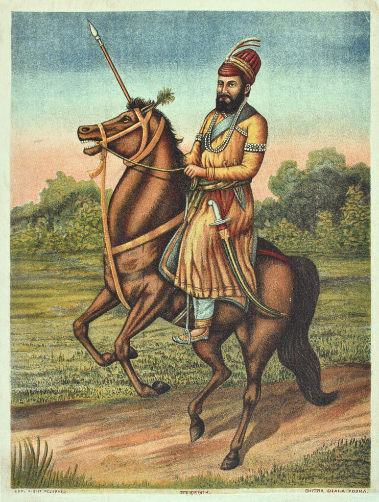 Afzal Khan (d. 1659) Size: 18.5 x 13.5 in (47 x 34.3 cm) Date of printing: 1880s-1890s Afzal Khan played an important role in the southern expansion of the Bijapur Sultanate by conquering the former Vijayanagara territory. When Shivaji started acting as an independent ruler, he tried to subjugate him in 1659 but was killed […]