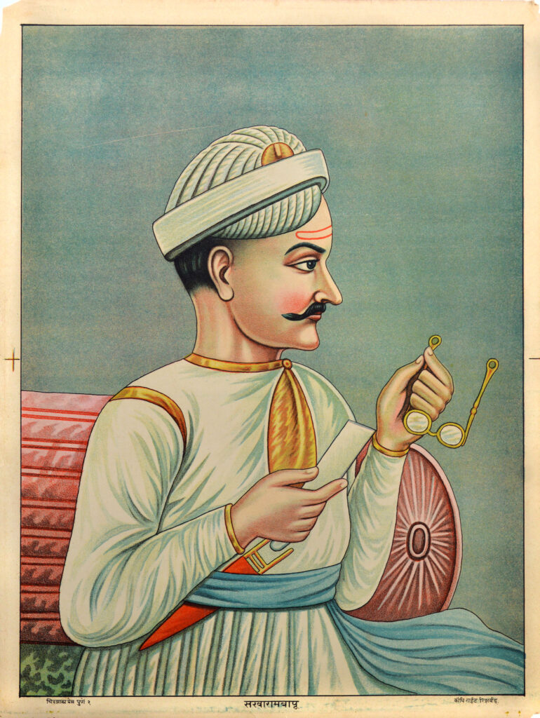Sakharam Bapu (d. 1781) Size: 19.3 x 14.4 in (49 x 36.6 cm) Date of printing: 1880s-1890s Sakharam Bapu Bokil was an influential foreign minister of the Maratha Empire during the Peshwa administration in Pune. He was a friend and the favourite commander of Shrimant Raghunathrao Peshwa. He was a descendant of Pantoji Gopinath, who […]