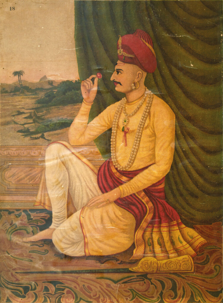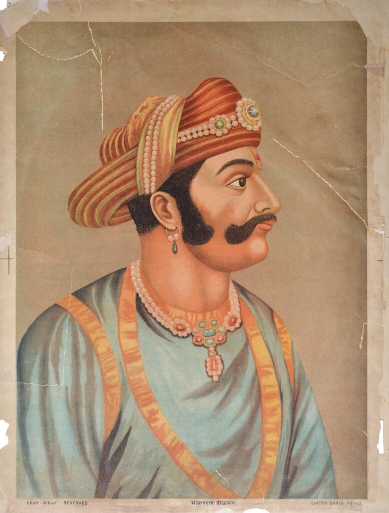 Raja Vyankoji (1632-1686) Size: 19.8 x 14.8 in (50.3 x 37.6 cm) Date of printing: 1880s-1890s Raja Vyankoji Bhonsle was Shivaji’s younger half-brother. He was the founder of the Maratha rule in Thanjavur. His descendants, the junior branch of the Bhonsle family, ruled Thanjavur until the annexation of the kingdom by the British in 1855. […]
