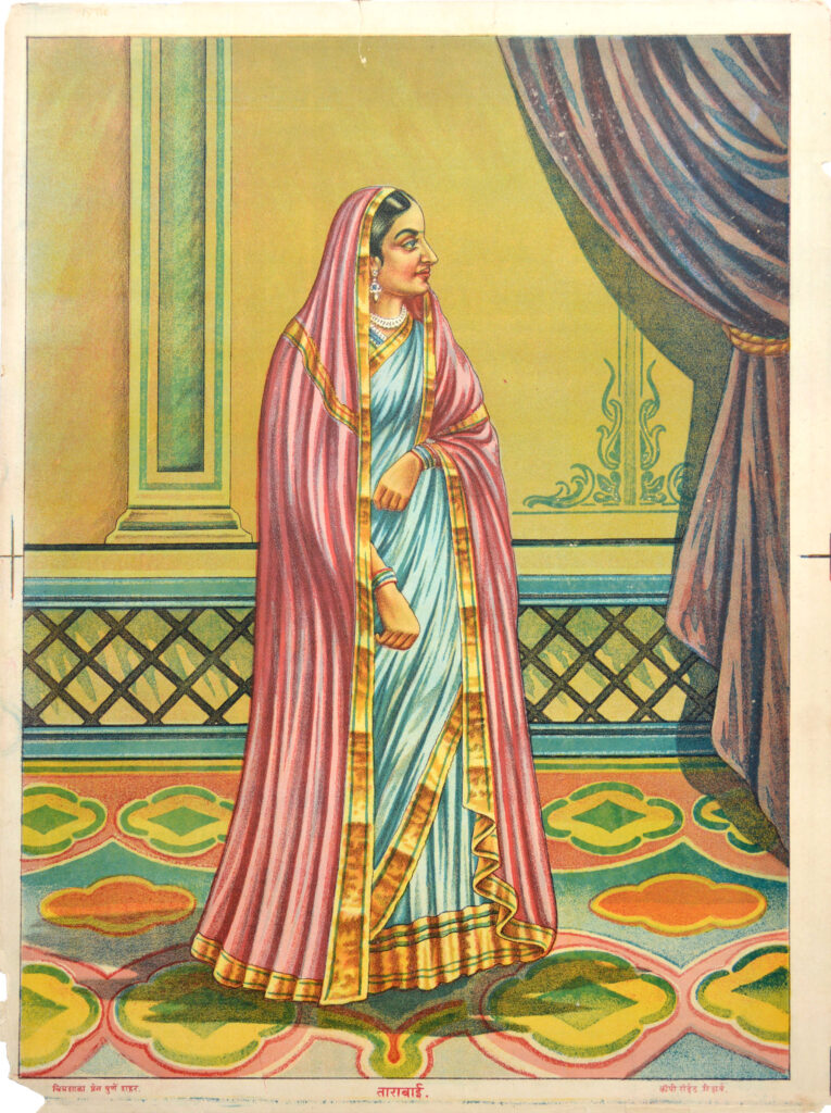 Tarabai (1675-1761) Size: 19.4 x 14.4 in (49.3 x 36.6 cm) Date of printing: 1880s-1890s From 1700 until 1708, after the death of her husband Chhatrapati Rajaram Bhonsle, Shivaji’s daughter-in-law, Tarabai Bhonsle (born Mohite) became the regent of the Maratha Empire until her son took over the empire. She is famous for her role in […]