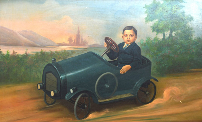Boy with toy car Gelatine silver print and oil colour 15 x 24 in. (38 x 61 cm) Laxmi Art Photo Studio, Bombay ~ Unknown artist, c. 1920
