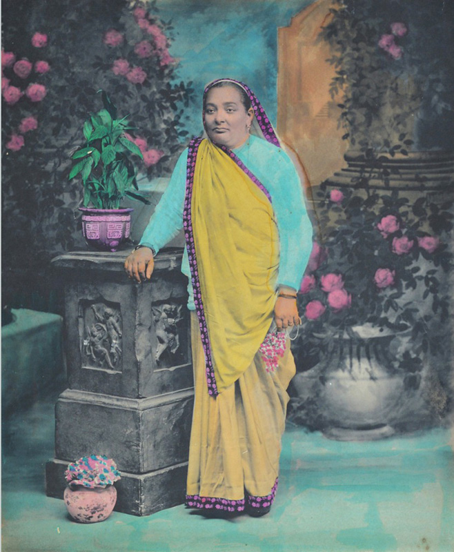 Bai Jerbai Nusherwanji Wadia (1852-1926) An ordinary lady with an extra ordinary vision Platinum print and watercolour 11.5 x 9.5 in. (29.2 x 24.1 cm) The Bombay Photo Co. ~ Unknown artist, c. 1925