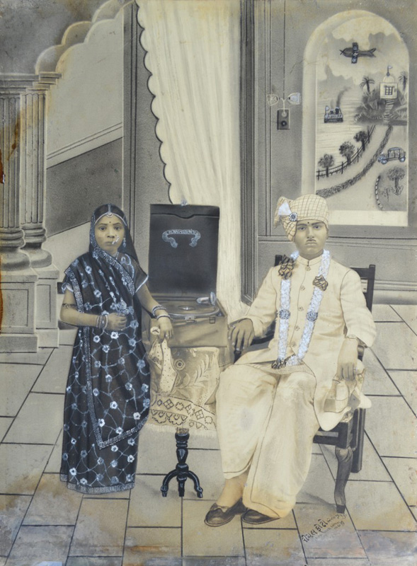 Bhawarlal and his wife Albumen print and watercolour 12 x 8.25 in. (30.5 x 21 cm) Unknown photographer and artist, dated 1922