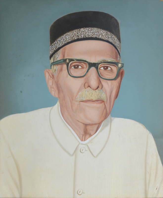 Sheth Nusarwanji Palanjee Hilluwala Parsi philanthropist from Surat Gelatine silver print and watercolour 20 x 16 in. (50.8 x 40.6 cm) V. N. Mehta Art Studio ~ Unknown artist, c. 1940