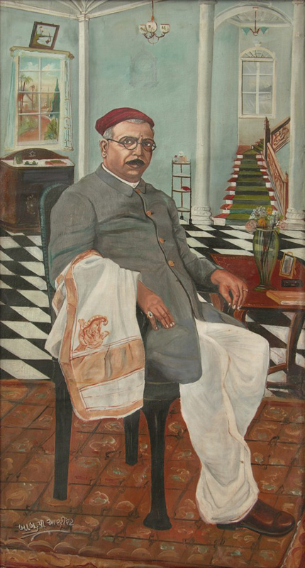 Sir Chinubhai Baronet (1864-1916) holding sample of cotton manufactured in his mill attributed to Fyzee Rahamin (1880-1964) circa 1910 Oil on canvas 84 x 54 inch (214 x 137 cm.) Sir Chinubhai Baronet, owner of cotton textile mills in Ahmedabad, was known for his philanthropy and social dedications. He was given the title ‘Baronet’ in […]