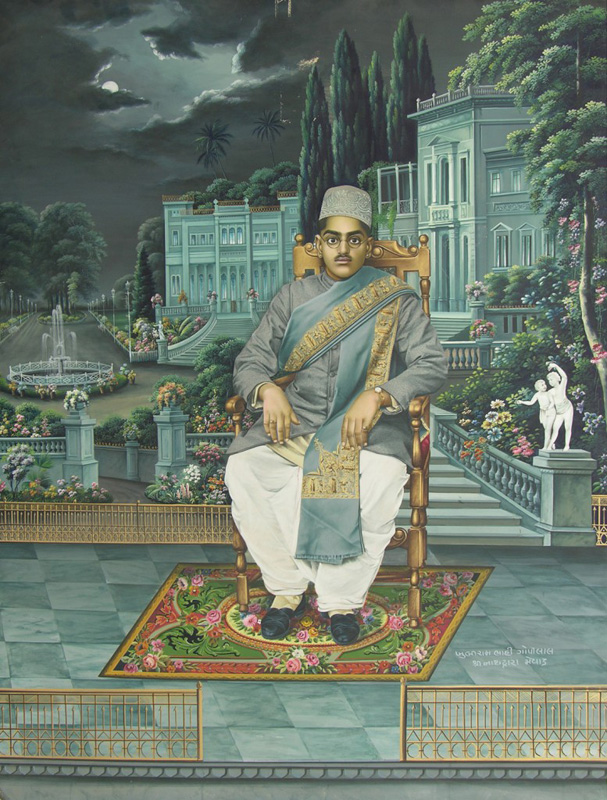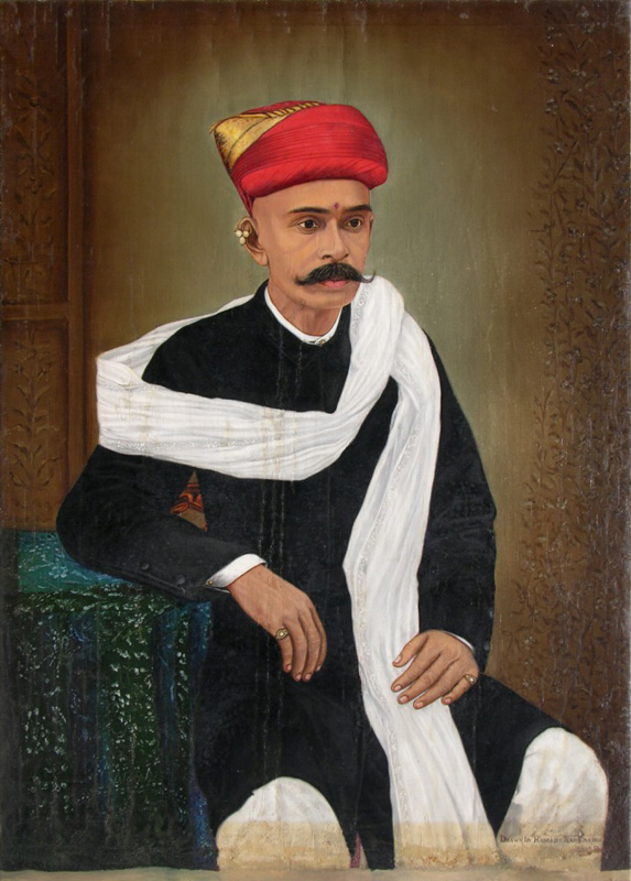 Sheth Vrajbhukhandas (1813-1884) a wealthy merchant from Surat by Hansaji Raghunatha dated: 1869 Oil on canvas 44 x 32 in. (111.76 x 81.28 cm.) Vrajbhukhandas was born in a Vaishnav family that had a philanthropic background since the last 5 generations. His business was very successful and flourished to Bombay, Bharuch, Ahmedabad, Ujjain, Indore and […]