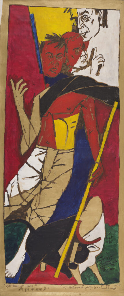 Dilip Kumar (1922 – 2021) Actor and film producer Artist M. F. Husain (1915 – 2011) dated 1995, Acrylic on canvas 122 x 52 in. (309.9 x 132 cm.) In 1995, the iconic painter M.F. Husain encountered one of Indian cinema’s most legendary actors—Dilip Kumar—at a film screening. The film, titled Ek Aag Ka Dariya […]