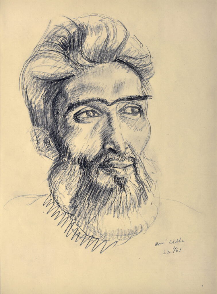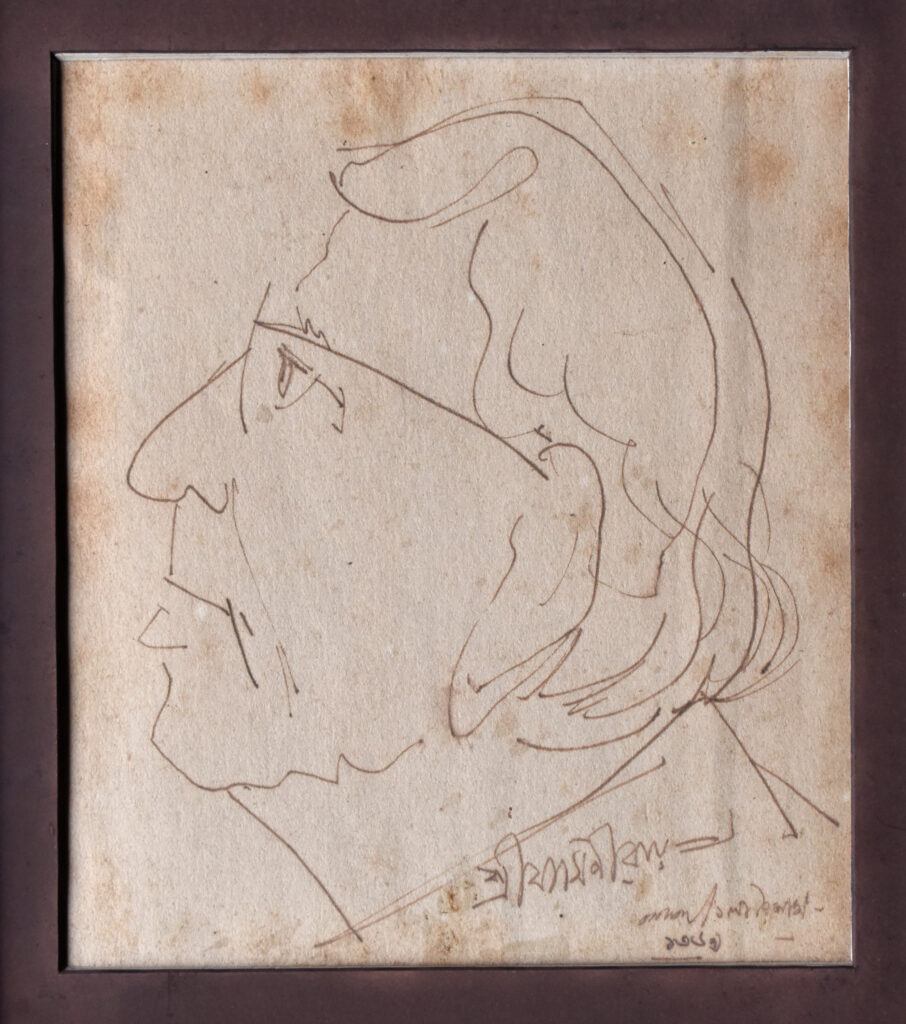 Portrait of Ashit Paul (Born 1950) Artist Ramkinkar Baij (1906 – 1980) dated 21-05-1975, Ink on paper 12.8 x 9.1 in. (32.5 x 23.1 cm.) This spontaneous sketch by the legendary Ramkinkar Baij, drawn in 1975, captures the young artist Ashit Paul in a moment of vivid artistic exchange. Executed in bold, free-flowing pen lines, […]