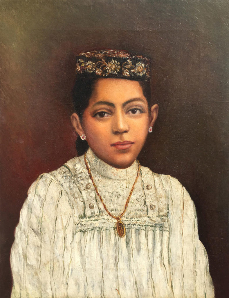 Ratanbai Rustomji Dalal by Muncharam M., Surat dated 01-02-1867 Oil on canvas 23.6 x 19.7 in. (60 x 50 cm.)