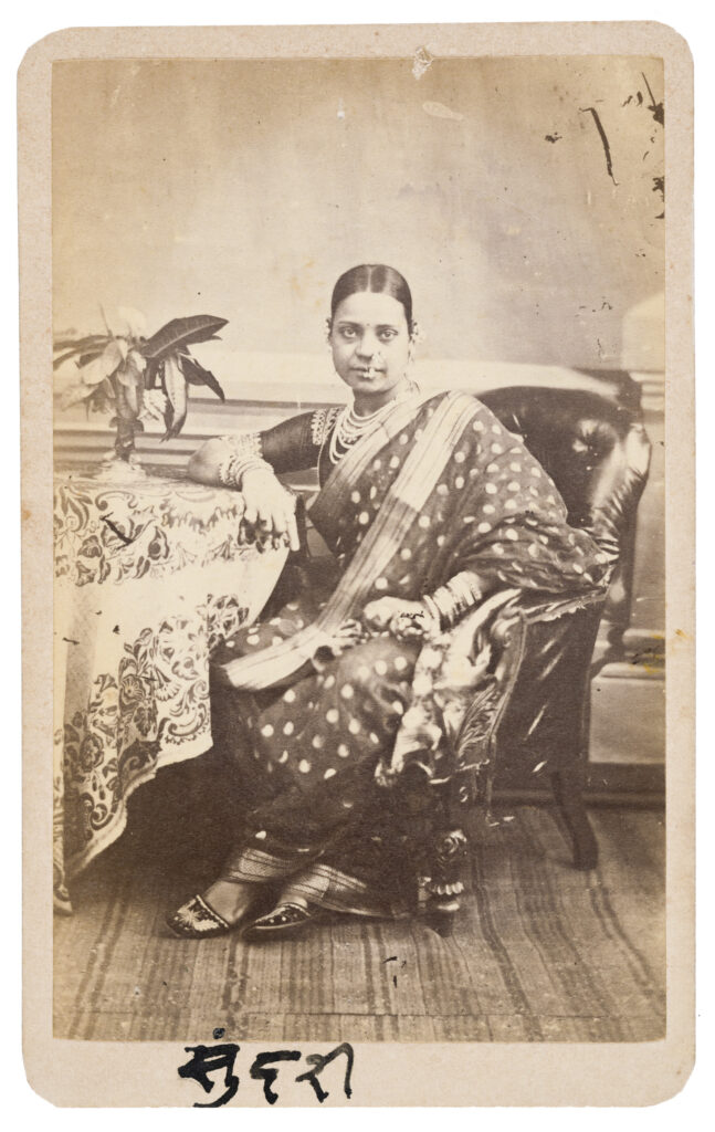 Sundari Albumen print on carte-de-visite, c. 1870 Size: 4 x 2.5 in (10.2 x 6.4 cm) Photographer: Unknown Inscription: Sundari (Hindi)