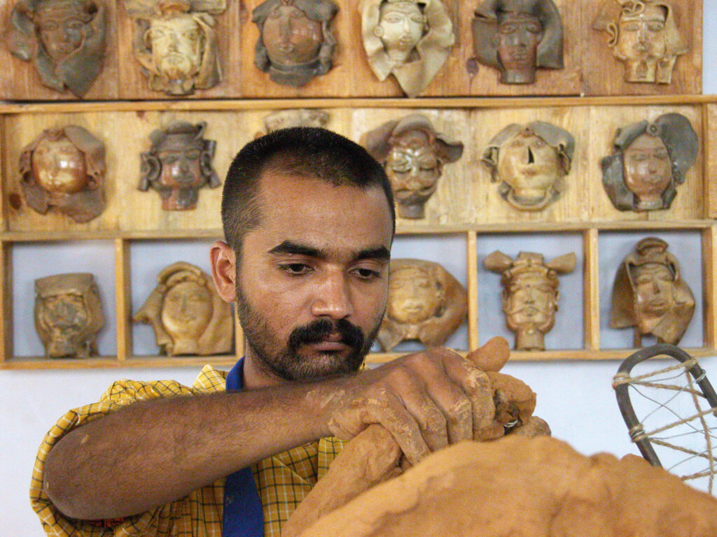 Sukhdev Rathod (b. 1979) Terracotta workshop, Jaipur, 2006 Sukhdev Rathod was born in 1979 and had an interest in art since his childhood. He went on to study at the Sundrenagar college of Art and then at the M S University, Baroda. He mostly paints various everyday objects, giving them his own individuality and story […]