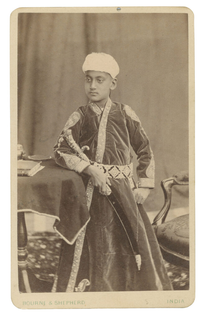 Maharaja Sayajirao Gaekwad (1863, r.1875-1932) Maharaha of Baroda Albumen print on carte-de-visite, c. 1875 Size: 4 x 2.5 in. (10.2 x 6.4 cm) Inscription: HH the Gaekwar The second son of Kashirao Bhikajirao Dada Saheb Gaekwad and Ummabai, Gopalrao wanted to be a ruler from the age of 12 though he belonged to a family […]
