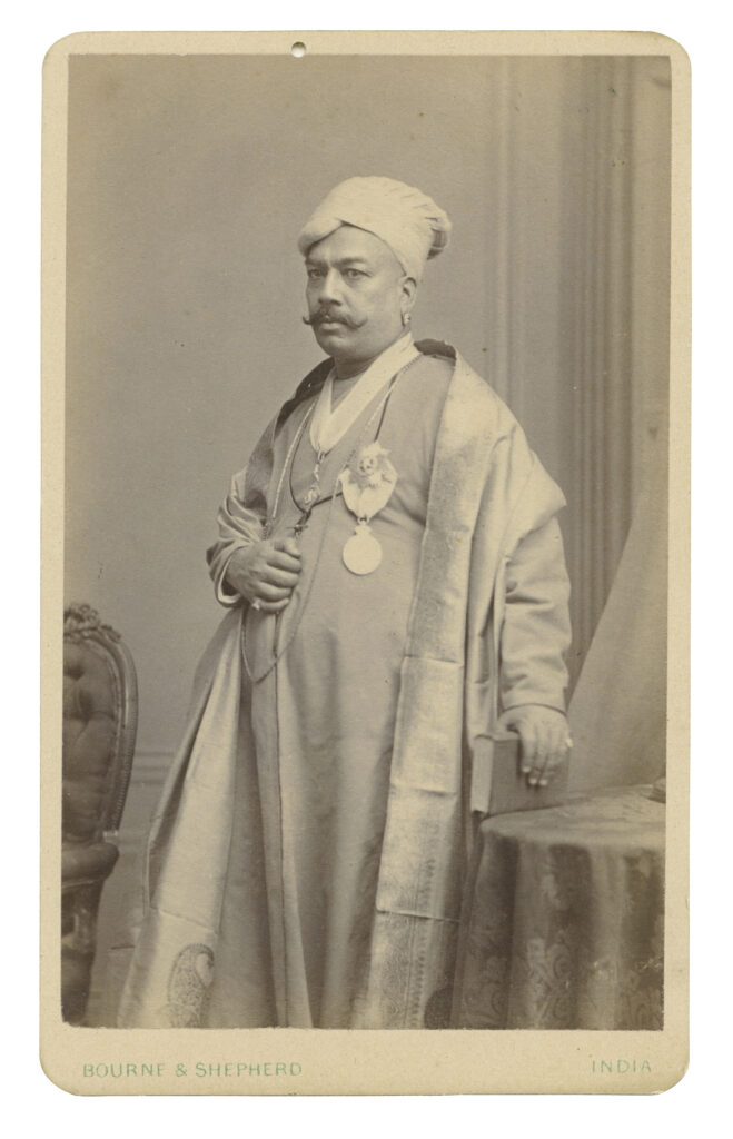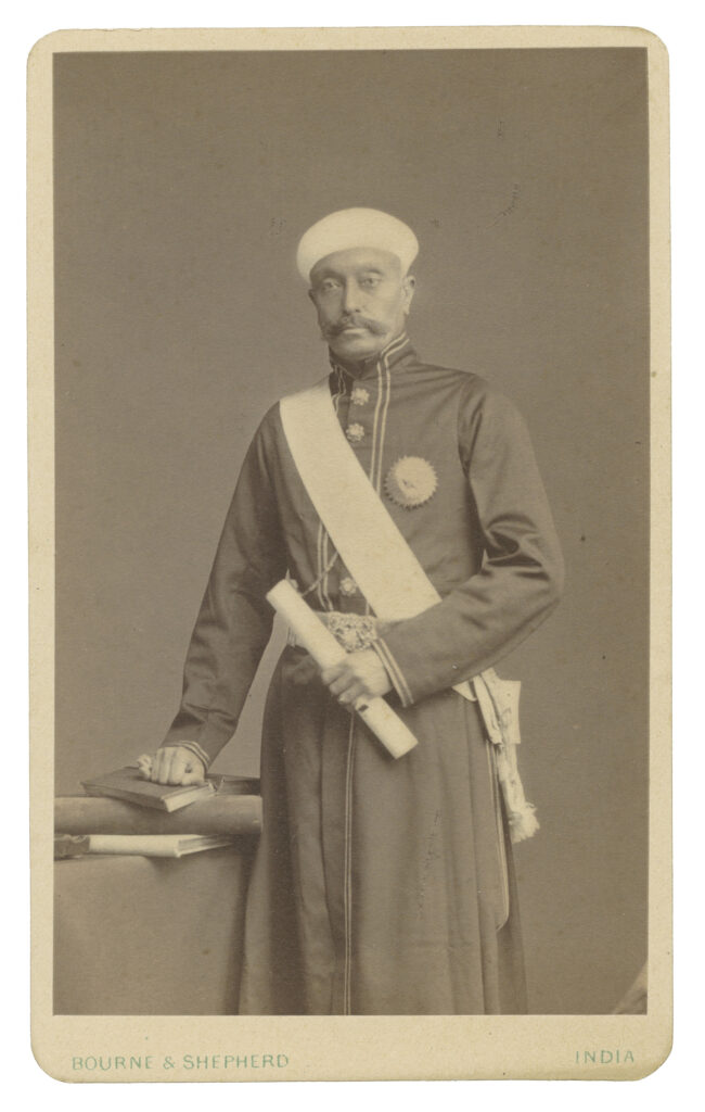Sir Tanjore Madhava Rao (1828-1891) Diwan of Baroda Albumen print on carte-de-visite, c. 1875 Size: 4 x 2.5 in. (10.2 x 6.4 cm) Inscription: HE Sir Madava Raw Madhava Rao was born in a Maharashtrian Brahmin family in the city of Kumbakonam. His father Shri R. Ranga Rao had been the Diwan of Travancore. He […]
