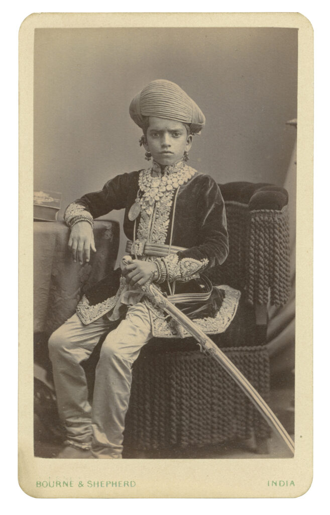 Maharani Jamnabai Gaekwad (1853-1898) Maharani of Baroda Albumen print on carte-de-visite, c. 1875 Size: 4 x 2.5 in. (10.2 x 6.4 cm) Inscription: HH Jamnabai of Baroda Born as Tanhibai Mane in Rahamatpur, near Satara to a noble man named Shrimant Madhavrao Babujirao, at the age of 13, she was married to the Maharaja of […]