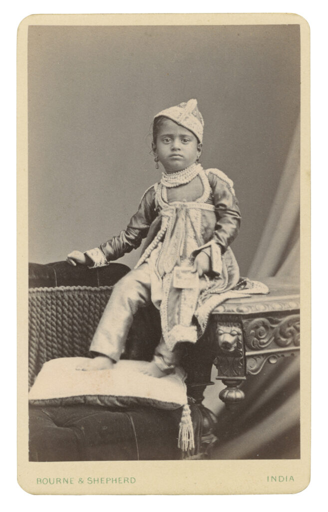 Princess Tarabai Gaekwad (1871-1897) Daughter of Jamnabai Albumen print on carte-de-visite, c. 1875 Size: 4 x 2.5 in. (10.2 x 6.4 cm) Inscription: HH Tarabai of Baroda She was the daughter of the Maharaja of Baroda, Khanderao Gaekwad and Jamnabai. The Maharaja suddenly died in 1870 with Jamnabai pregnant with a girl child leaving no […]