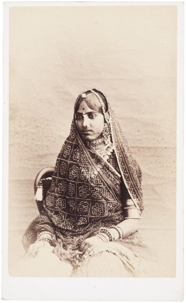 Zenana Woman, Jaipur Albumen print on carte-de-visite, c. 1870 Size: 4 x 2.5 in (10.2 x 6.4 cm) Photographer: T. Murray, Nainital