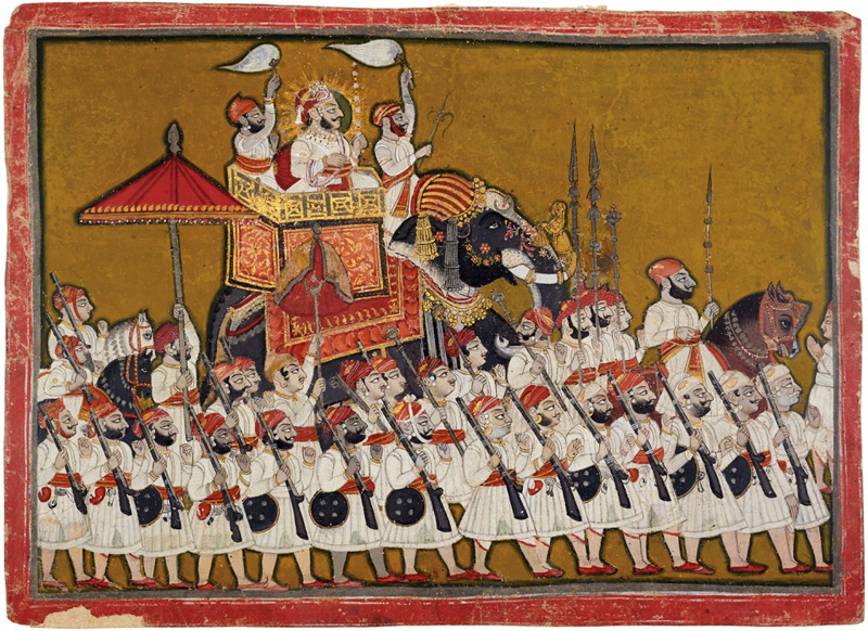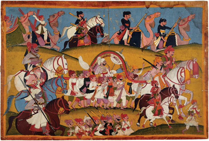 Maharao Ram Singh II (1808, r.1828-1866) of Kotah by Kotah court artist circa 1850 CE Gouache on paper 12.7 x 9.8 in. (32 x 24.9 cm.) Maharao Ram Singh II of Kotah was a dynamic ruler and a noted patron of arts. A large number of paintings were made by numerous painters documenting his daily life and […]