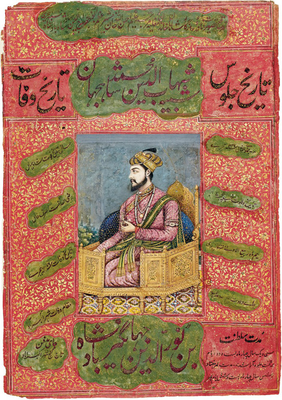 Shahab-ud-din Shah Jahan kneeling on throne