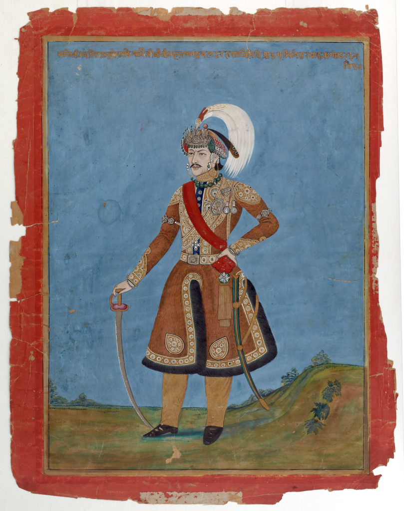 Raja Man Singh (r. 1635-1660) Nurpur, 1850 Opaque pigments with gold on paper Image: 15.5 x 9 cm Folio: 19.3 x 12.2 cm Inscription: (back) Shri Raja Man Singh Guleraya Raja Man Singh of Guler is often said to have been a man of great courage. When summoned to the Mughal court, he bravely refused […]