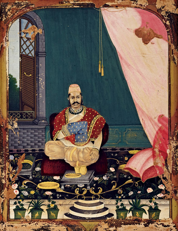 Portrait of Govardhanlalji in Company style with colonial settings