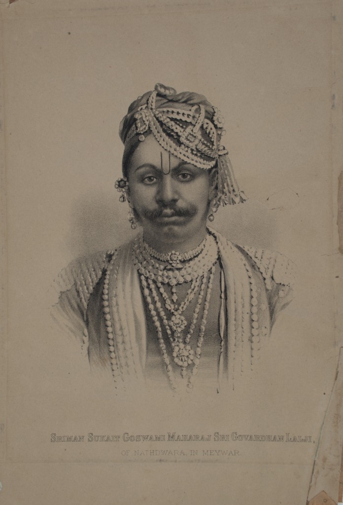 Lithograph of Govardhanlalji after a British photographers portrait