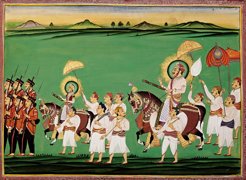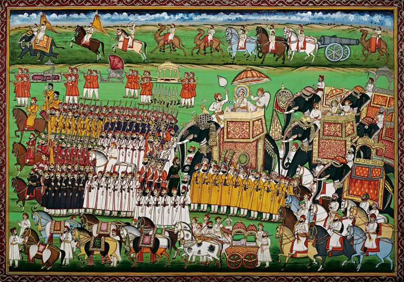 Procession for the festival of Chunri Gangaur by Unknown Artist Nathdwara circa 1865 Opaque watercolour, gold and silver on paper 11.75 x 15.75 in. (29.8 x 40 cm.) Gangaur is a very important festival in Rajasthan. It is the celebration of spring, harvest as well as marital fidelity. This festival is celebrated with pomp and […]