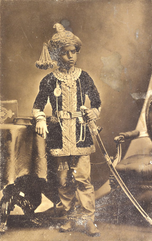 Maharao Pragmalji II (1839 – 1875) He got married in 1852 and then remarried in 1862. His son – Khengarji was born in 1866. He also had a daughter – Kumari Bairajba, who later became the Maharani Saheba of Bikaner and married Dungarsinhji in 1870. This here is the family tree. Albumen print, mounted 17.5 x 12 in. […]