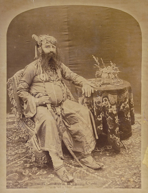 Rajarajeshwar Sir Ranbir Singh (1830 – 1885) Maharaja of the princely state of Jammu and Kashmir from 1857 to 1885. He was a well known and reputed scholar of classical Persian and learned English, Sanskrit and Pashtu. During his reign, the trans Himalayan regions of Gilgit, Hunzanagar and Astore were conquered. Carbon print, mounted 7.5 x 4.75 in. (19 […]