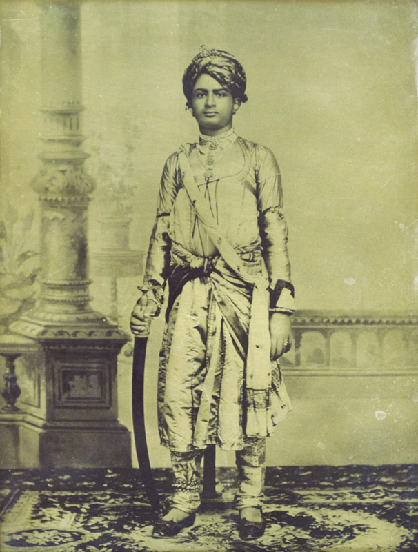 Shri Karansinhji (1871 – 1909) The younger brother of Maharao Khengarji, Rao of Kutch, he represented his brother at the Queen Victoria’s Golden Jubilee celebration in London. This gold lacquer photograph will never fade, or produce spots. This Japanese technique was patented on December 26, 1891. Gold lacquer photograph on wood 8 x 6 in. (20.3 x 15.2 cm.) […]