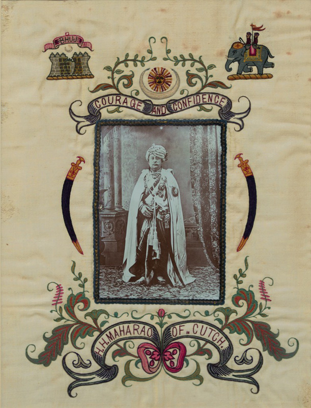 Maharao Sir Khengarji III (1866, r. 1875 – 1942) He was the Ruler of Kutch. This portrait has been treated a bit differently and instead of the mount of the photograph, it has been stitched on cloth. The cloth has also been embroidered in the traditional mochi bharat or cobblers stitch of Kutch. The top of the cloth has […]