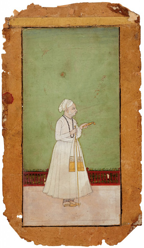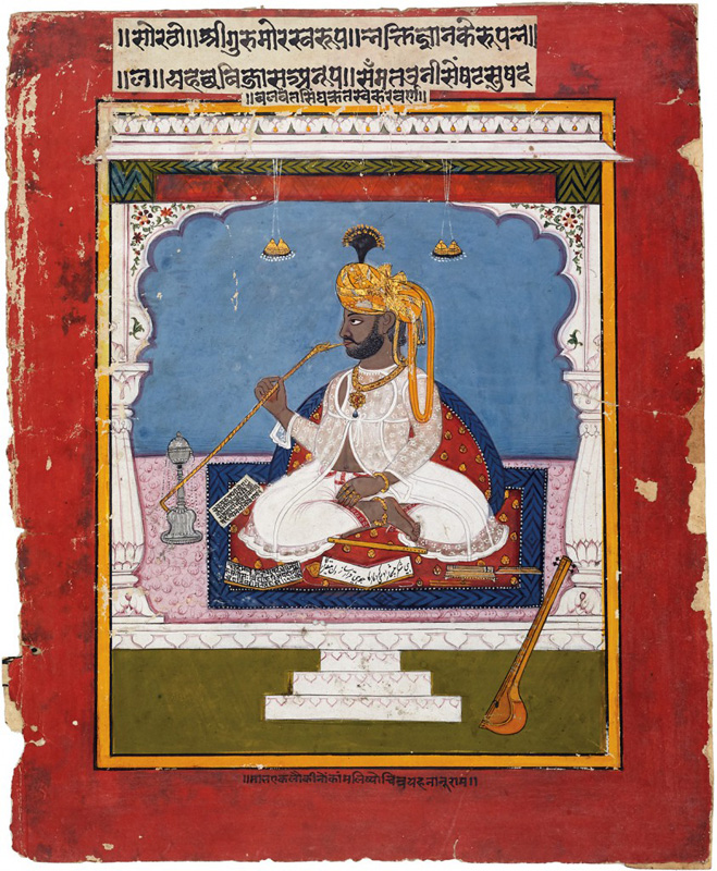 Diwan Bakhtawar Singh (1707-1779) of Bikaner by Sahabdin of Bikaner dated 1765 CE Gouache on paper 9.8 x 5.7 in. (24.9 x 14.5 cm.) Back: “Mohataa ji: Ravji Shri Vakhataav Singhji ri sabih Ustei Sahaabdin ri kiwi chhe. Savat 1822 me kati vad 12” Mohta Bakhtawar Singh was appointed as the chief minister or diwan of […]